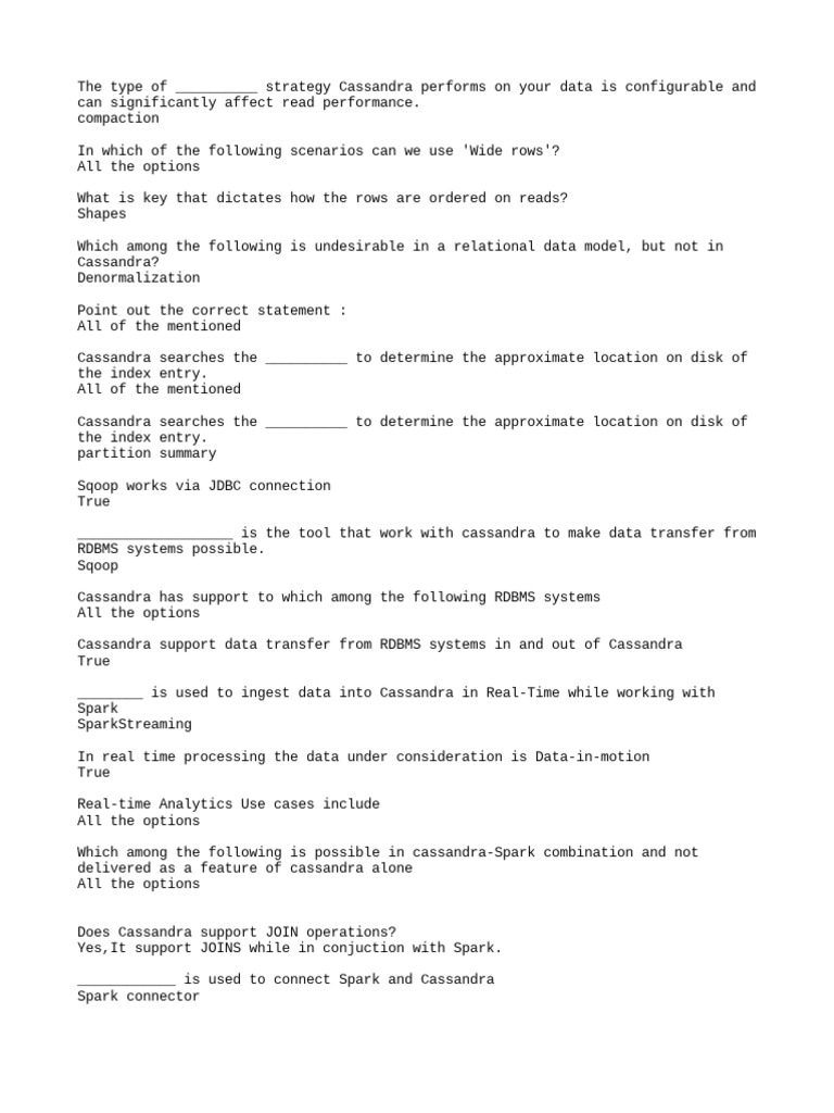 Subject: Cassandra Data Modeling - I got 18 out of 25 some may be wrong,,,