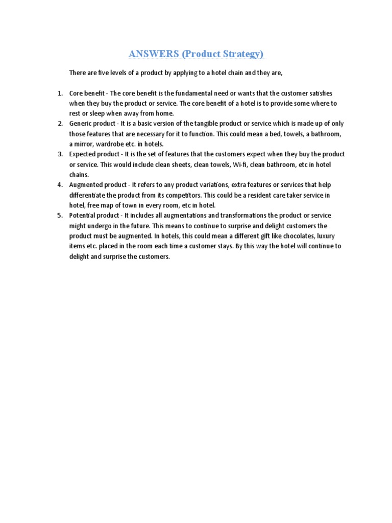 product must be augmented. In hotels, this could mean a different gift like chocolates, luxury