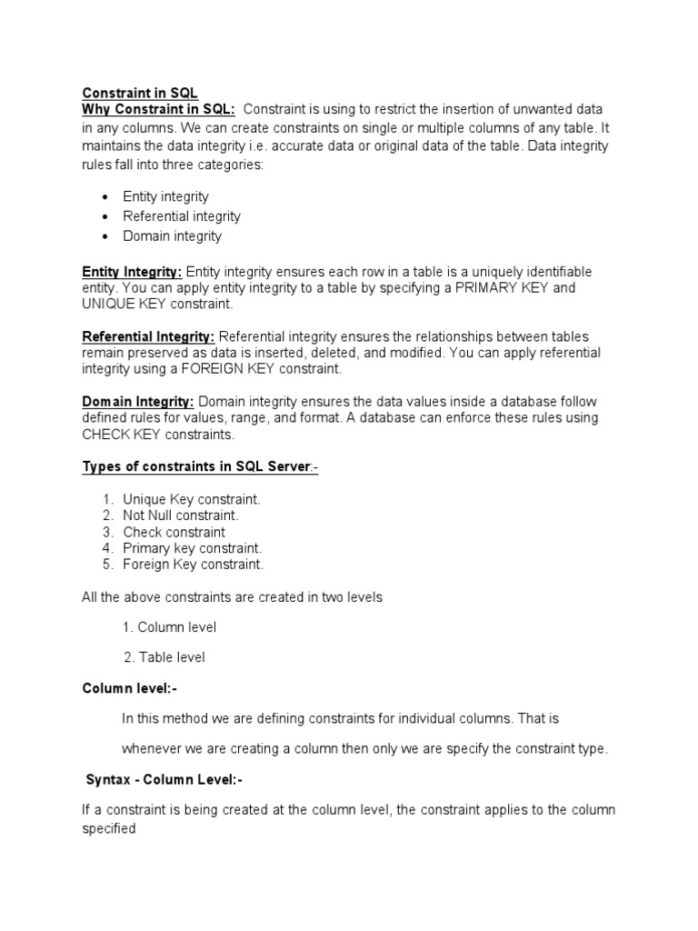 Why Constraint in SQL: Constraint is using to restrict the insertion of unwanted data