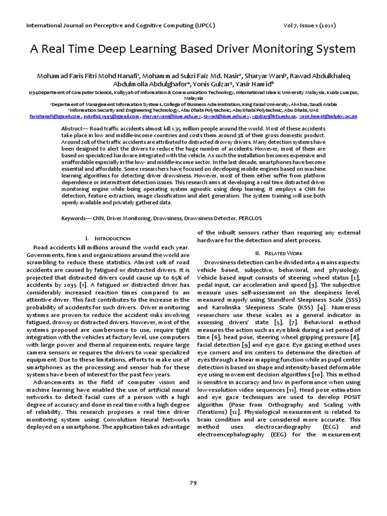 Keywords— CNN, Driver Monitoring, Drowsiness, Drowsiness Detector, PERCLOS