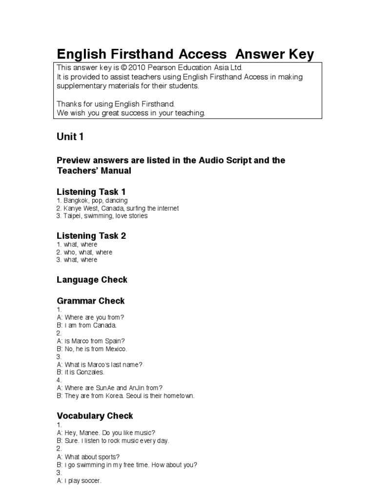 This answer key is © 2010 Pearson Education Asia Ltd.