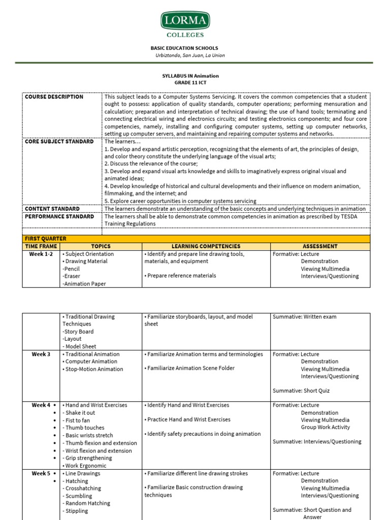 Week 1-2 • Subject Orientation • Identify and prepare line drawing tools, Formative: Lecture