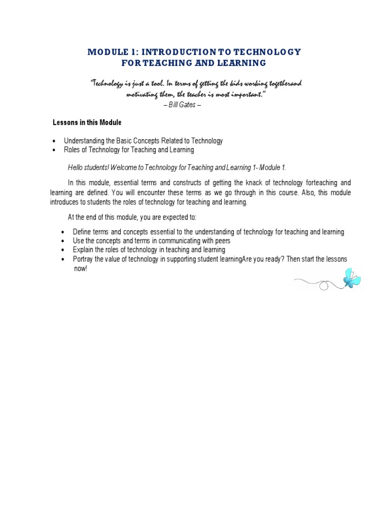 Hello students! Welcome to Technology for Teaching and Learning 1- Module 1.