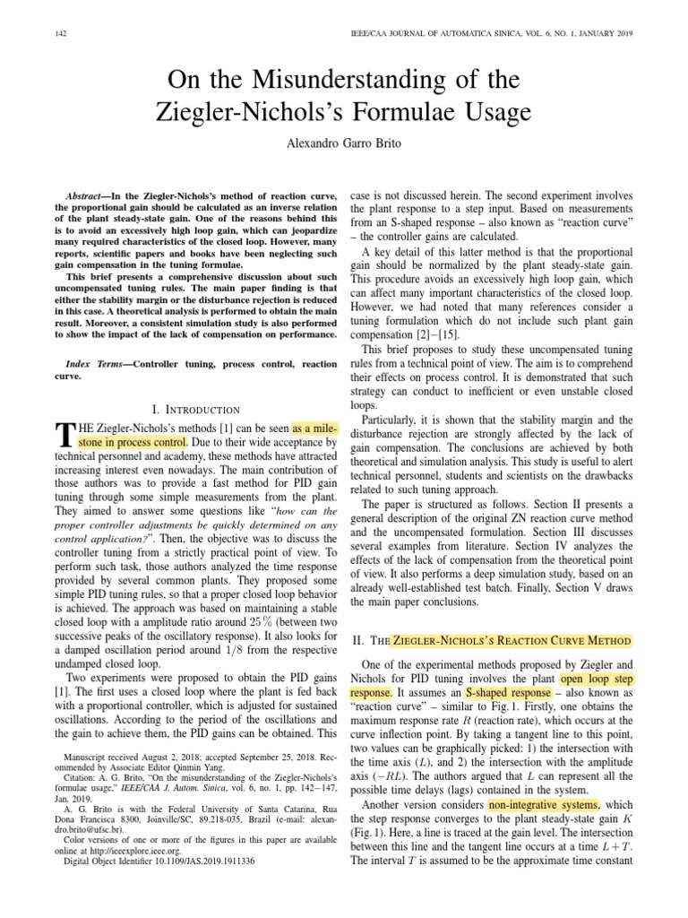 BRITO : ON THE MISUNDERSTANDING OF THE ZIEGLER-NICHOLS’S FORMULAE USAGE 143