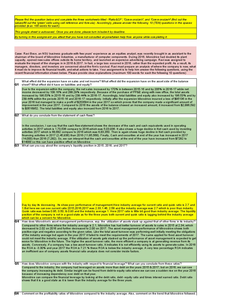 Please find the question below and complete the three worksheets titled -'Ratio&CF', 'CommonsizeV', and 'CommonsizeH'