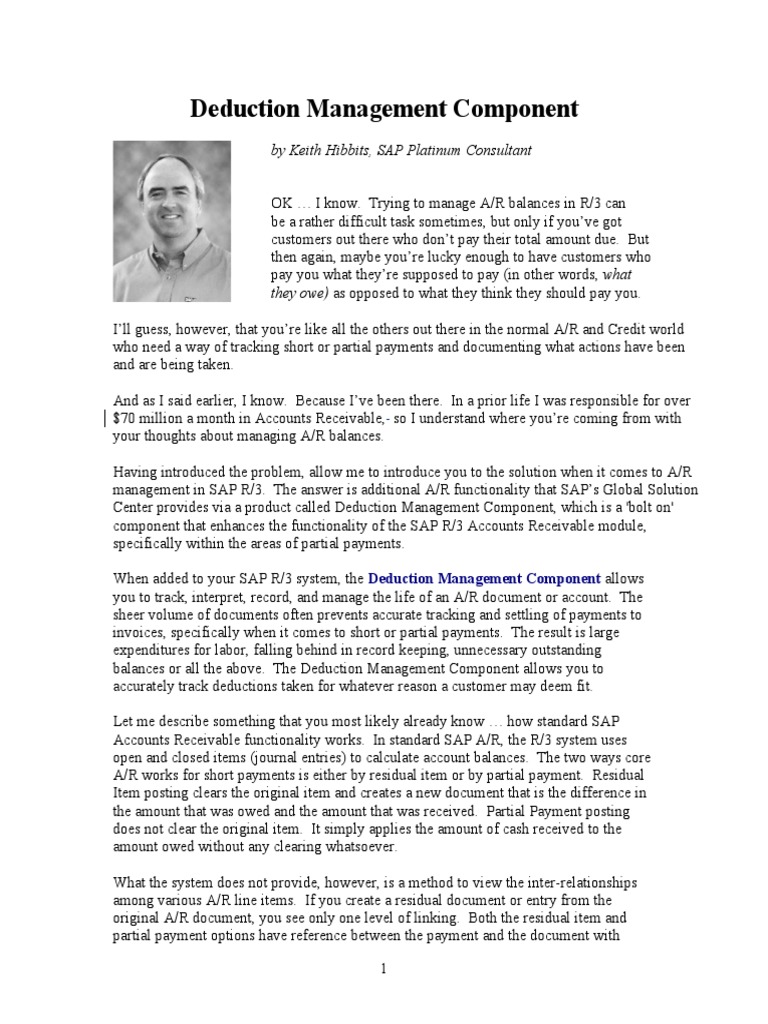 Center provides via a product called Deduction Management Component, which is a 'bolt on'