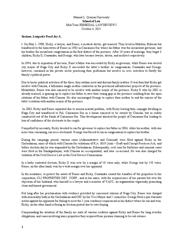 Mid-Term REMEDIAL LAW REVIEW I