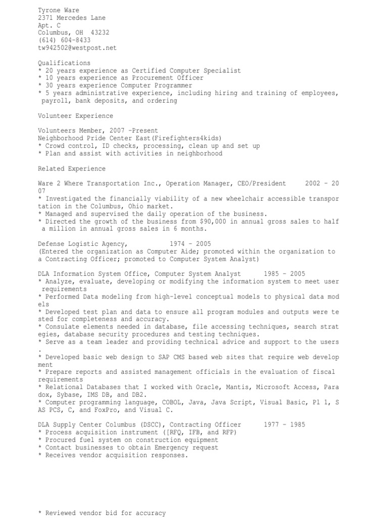 DLA Information System Office, Computer System Analyst 1985 - 2005