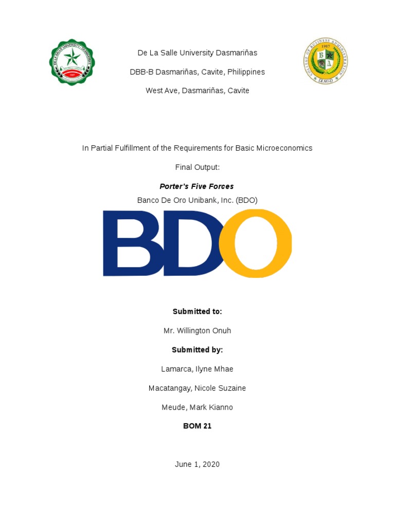 Trust Corporation (Metrobank) as its close competitors. BDO’s rivals are limited not only