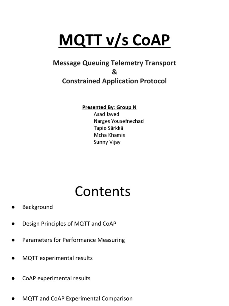 MQTT is designed for high latency and low-bandwidth networks and CoAP for constraint