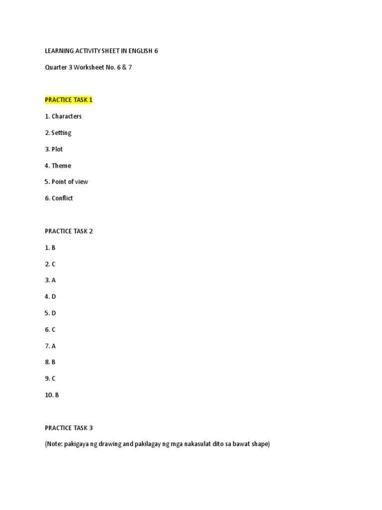 LEARNING ACTIVITY SHEET IN ENGLISH 6