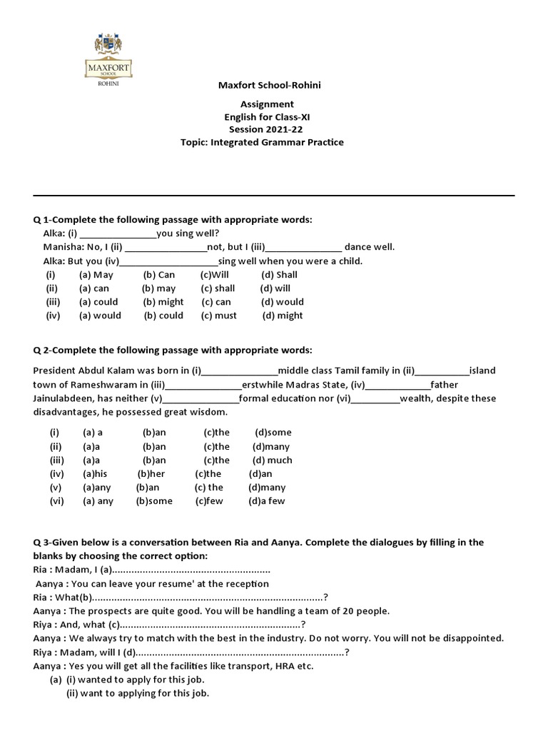 Q 3-Given below is a conversation between Ria and Aanya. Complete the dialogues by filling in the