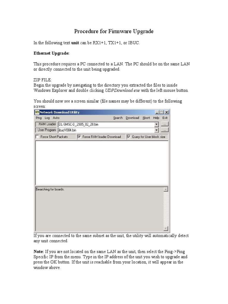Specific IP from the menu. Type in the IP address of the unit you wish to upgrade and
