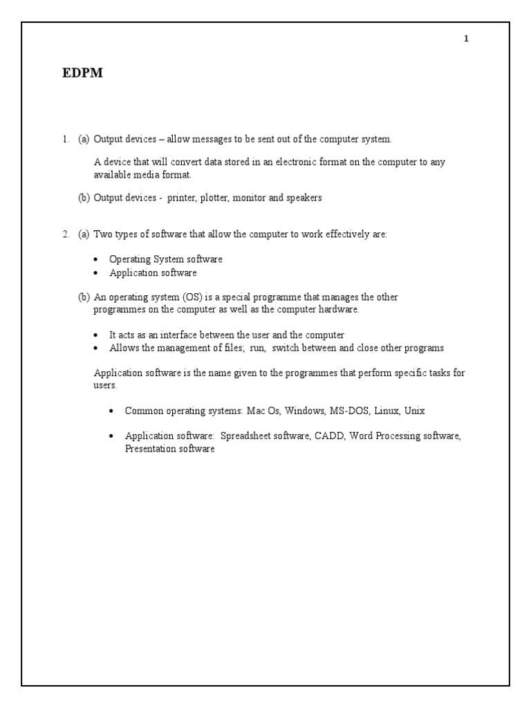 1. (a) Output devices – allow messages to be sent out of the computer system.