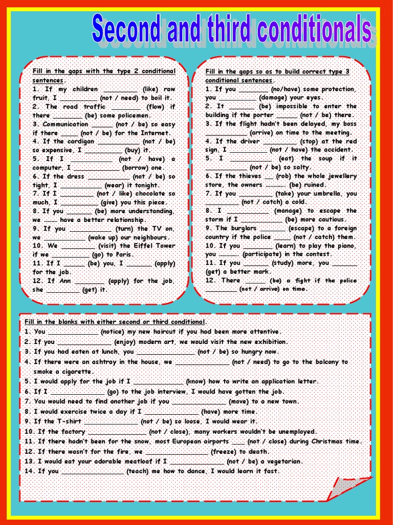 Fill in the gaps with the type 2 conditional Fill in the gaps so as to build correct type 3