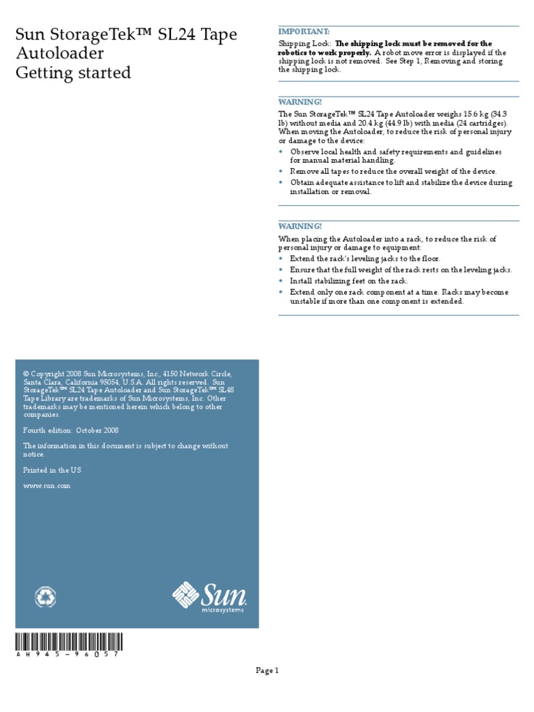 organization. See the Sun StorageTek™ SL24 Tape Autoloader and SL48