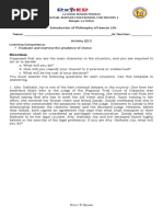 to this task I learned the values of self- think I lacked the values of fairness the values of preparedness, eagerness