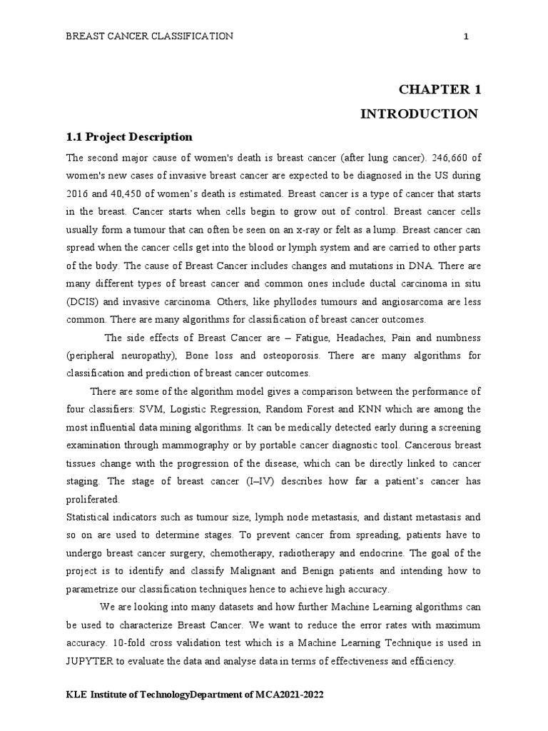 common. There are many algorithms for classification of breast cancer outcomes.