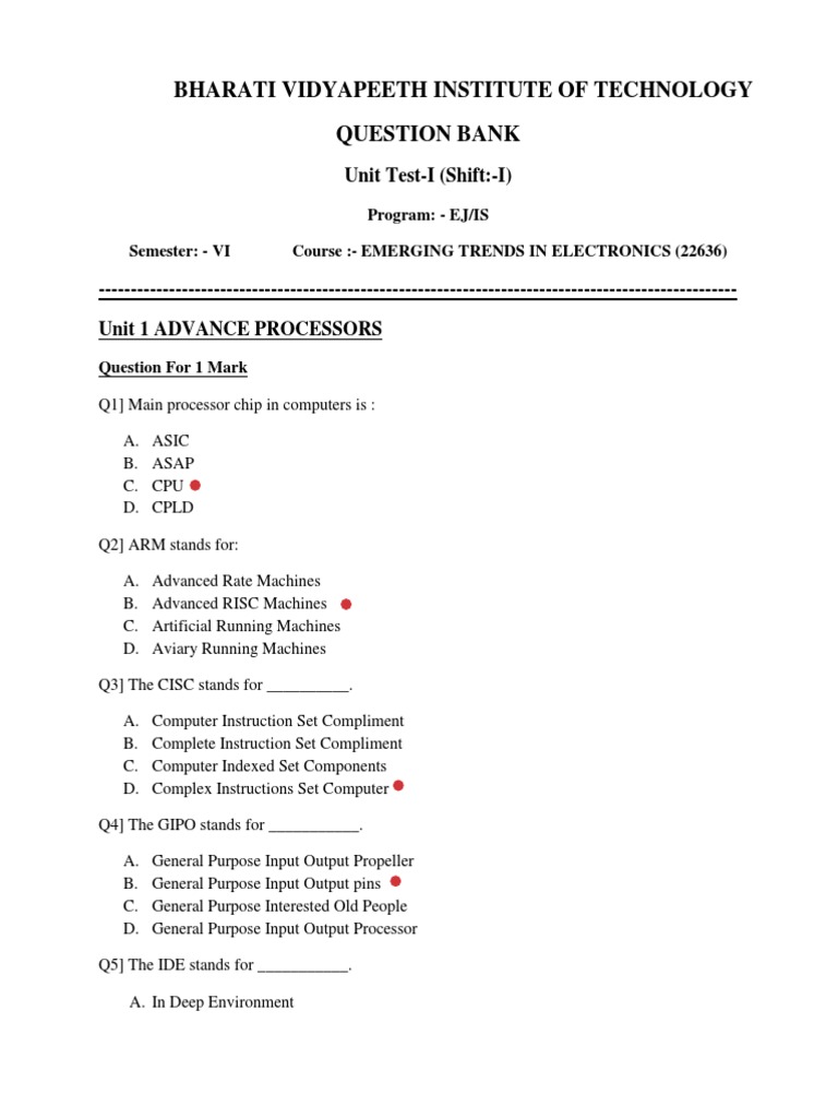 Unit Test-I (Shift:-I)
