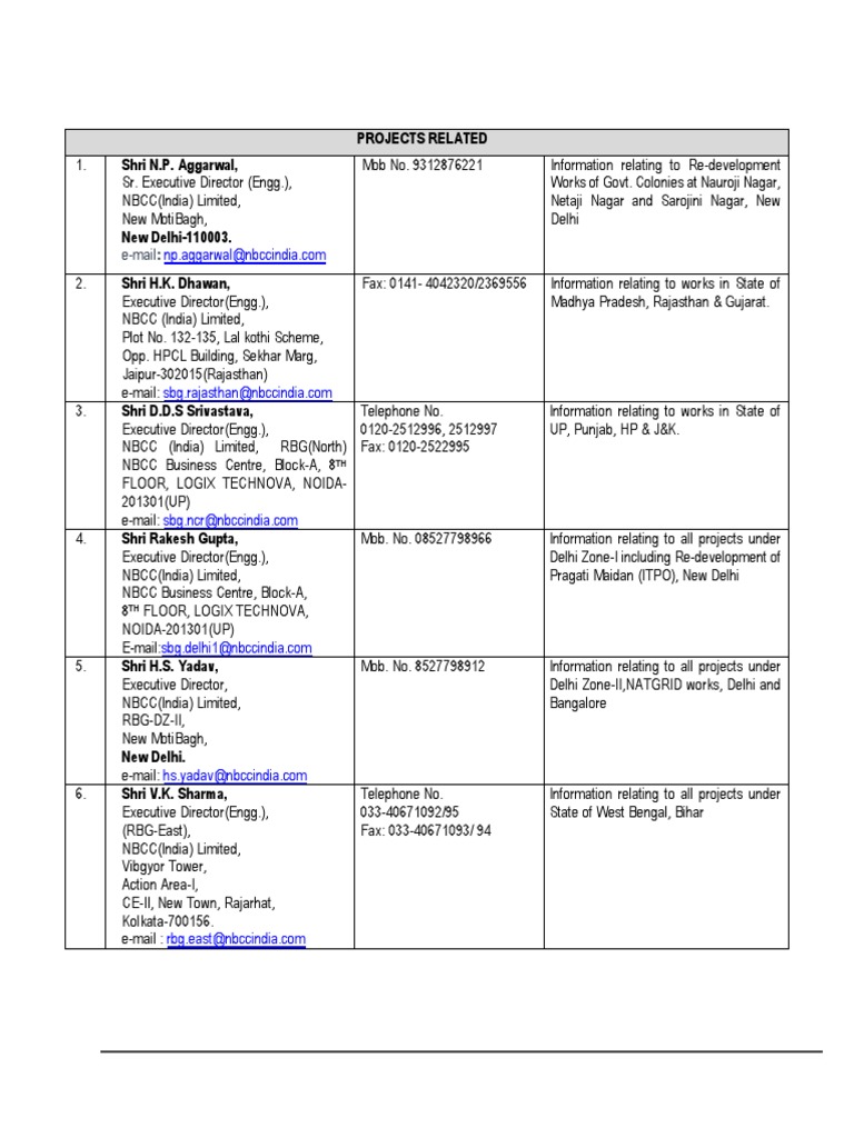 8. Shri Rajesh Bahal, Telephone: Information relating to all projects under