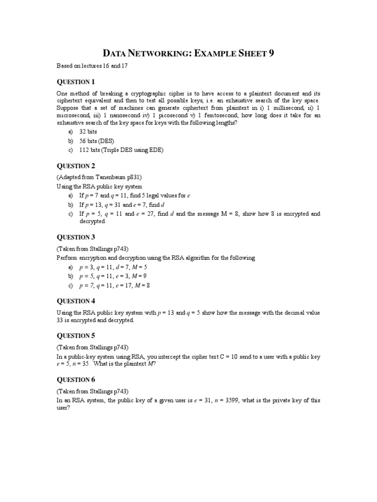 c) With p = 5, q = 11 and e = 27, z = (p – 1) x (q – 1) = 4 x 10 = 40