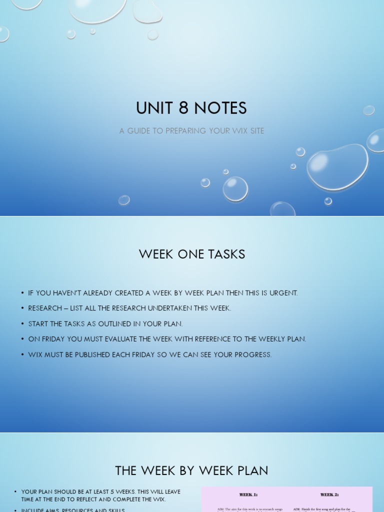 • WIX MUST BE PUBLISHED EACH FRIDAY SO WE CAN SEE YOUR PROGRESS.