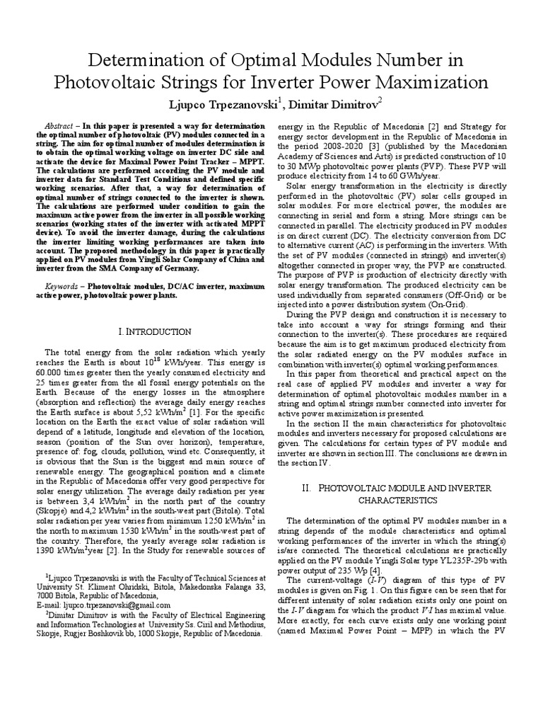 optimal number of strings connected to the inverter is shown. performed in the photovoltaic (PV) solar cells grouped in