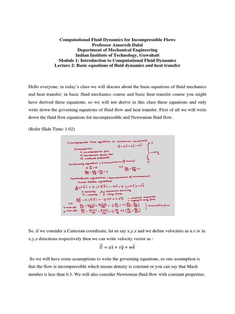 Lecture 2: Basic equations of fluid dynamics and heat transfer