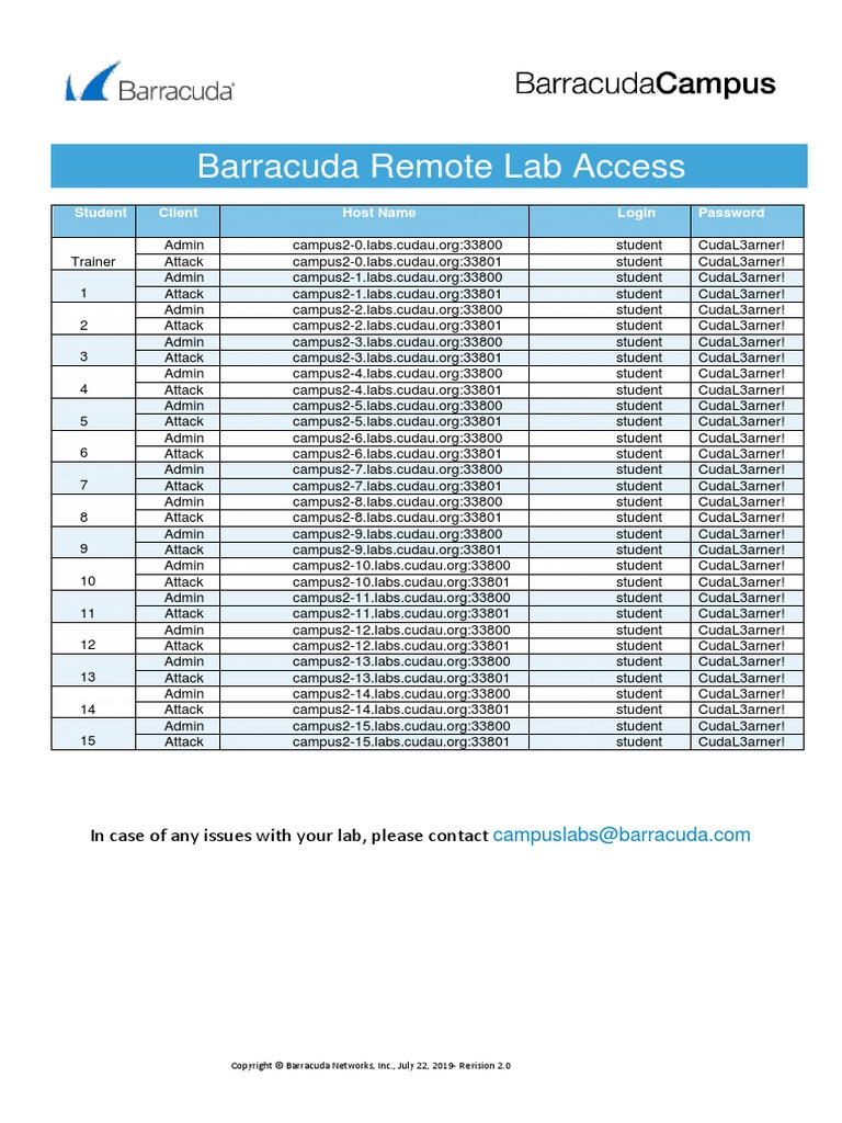 In case of any issues with your lab, please contact campuslabs@barracuda.com