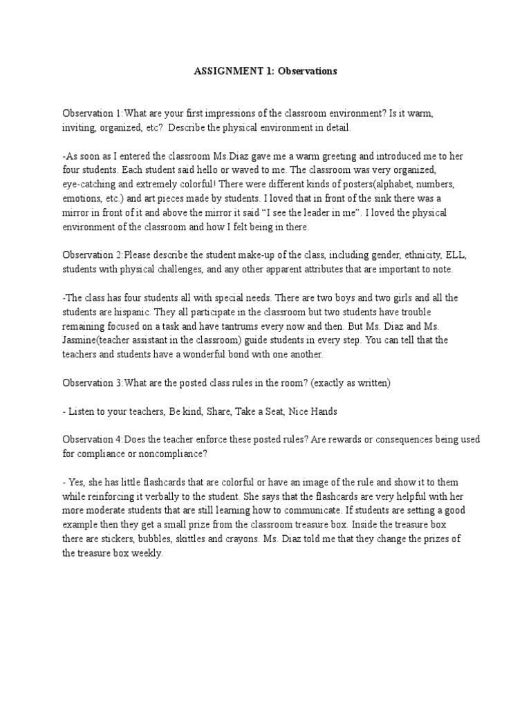 My ten hour observation experience with Ms.Diaz was truly a pleasure. I was always greeted