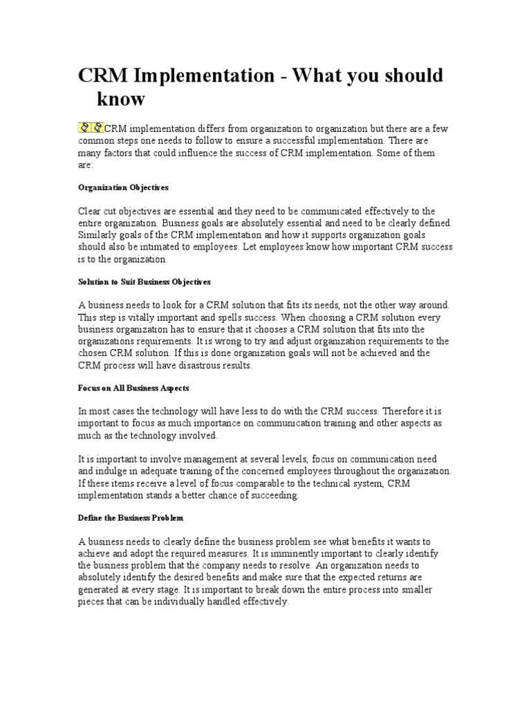 group of professionals possible. CRM aspects are complex and what is needed most is a