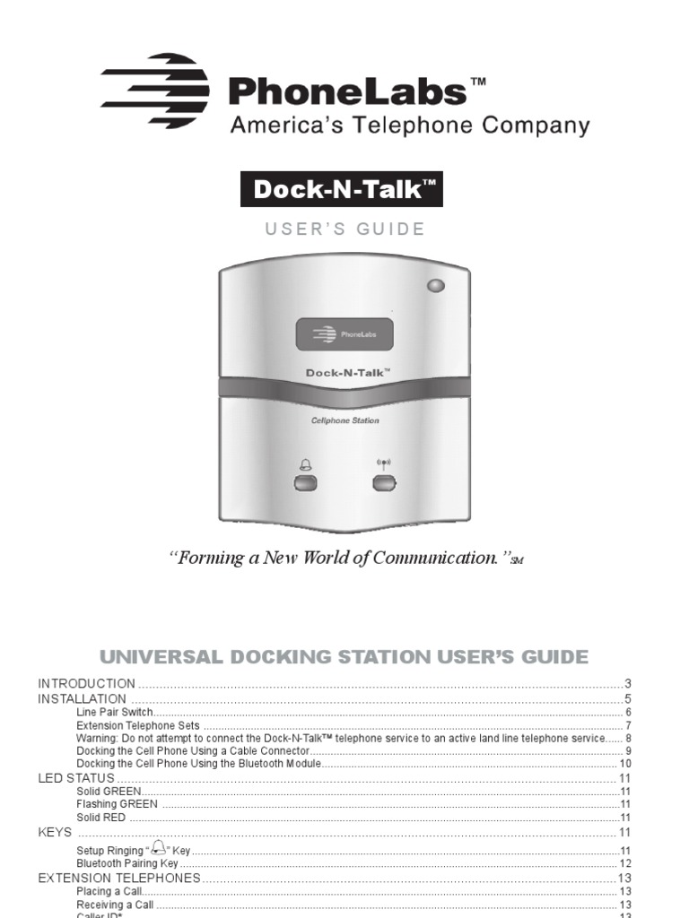 Congratulations on your purchase of the Dock-N-Talk™ universal cell phone docking
