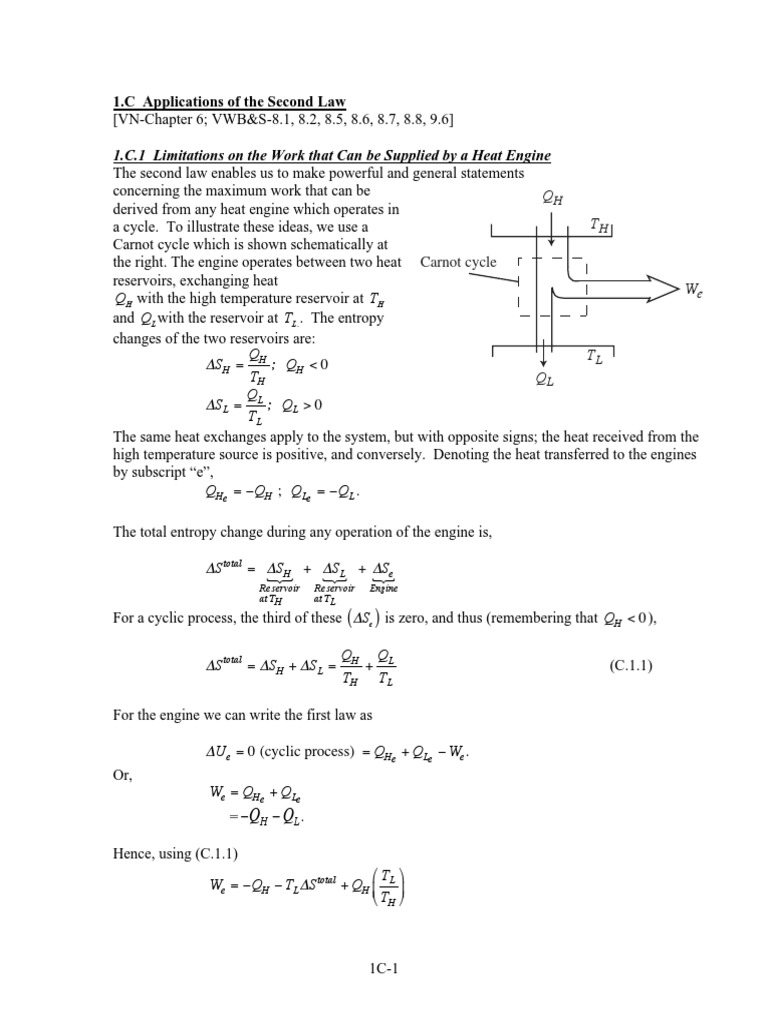 1.C.1 Limitations On The Work That Can Be Supplied by A Heat Engine