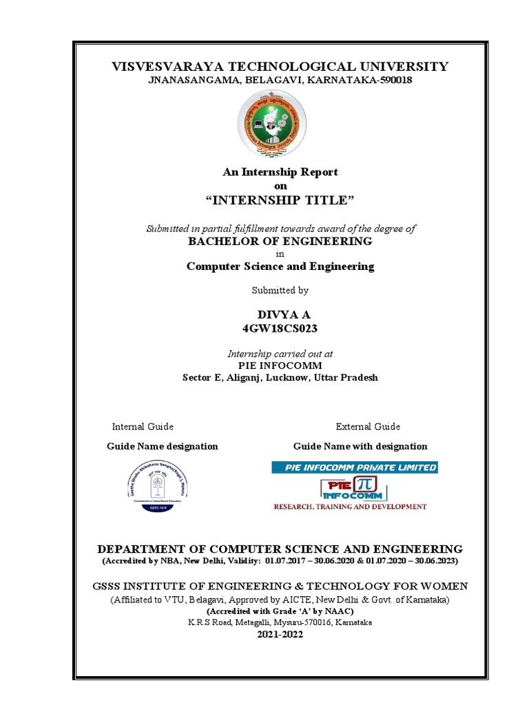 respect to the Internship work prescribed for Bachelor of Engineering Degree.