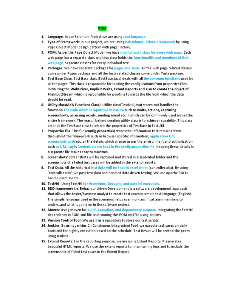 14. Jenkins: By using Jenkins CI (Continuous Integration) Tool, we execute test cases on daily