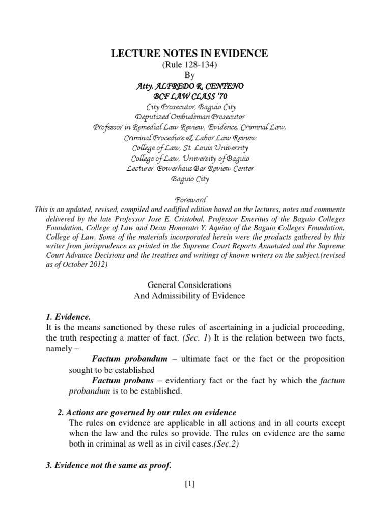 Professor in Remedial Law Review, Evidence, Criminal Law,