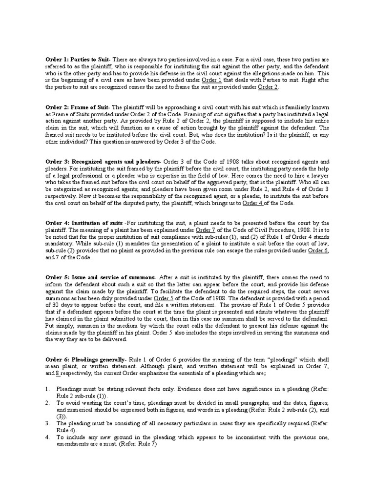Order 1: Parties to Suit- There are always two parties involved in a case.