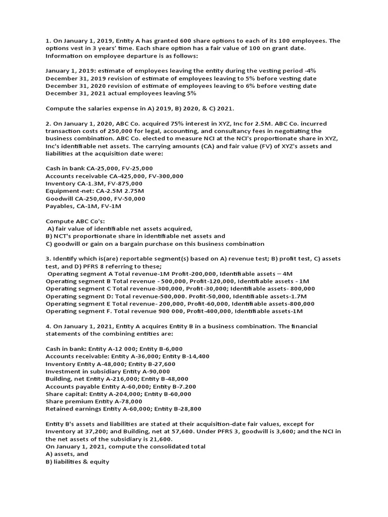 2. On January 1, 2020, ABC Co. acquired 75% interest in XYZ, Inc for 2.5M. ABC Co. incurred