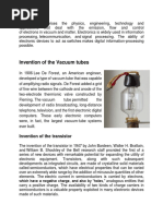 effect in inventing a two-element electron tube called a diode, and Lee De Forest followed in 1906 with