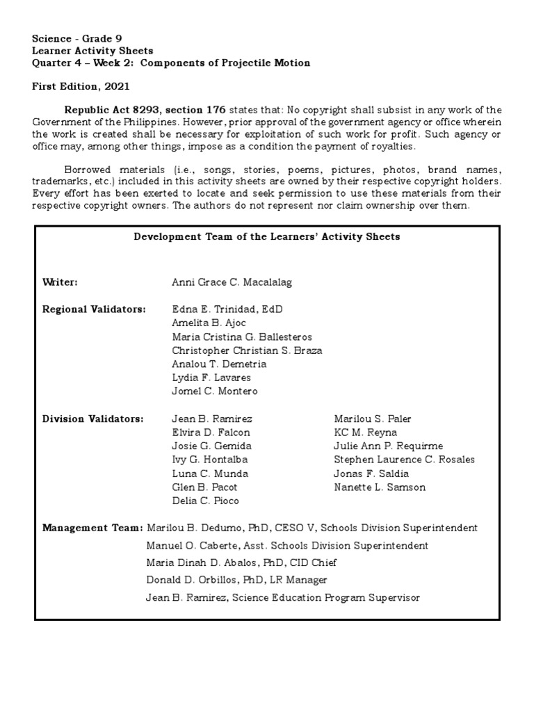 Rosales, Marivic S., Delos Santos, Ma. Teresa B. Science-Grade 9 Learner’s Module. Pasig