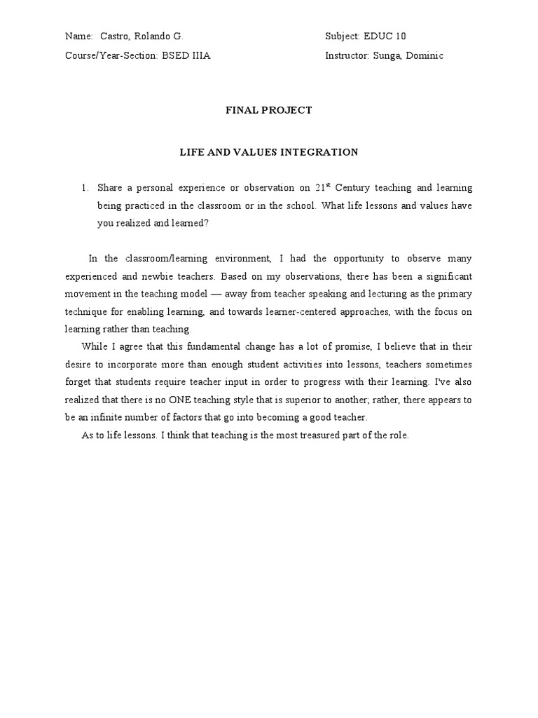 1. Share a personal experience or observation on 21st Century teaching and learning