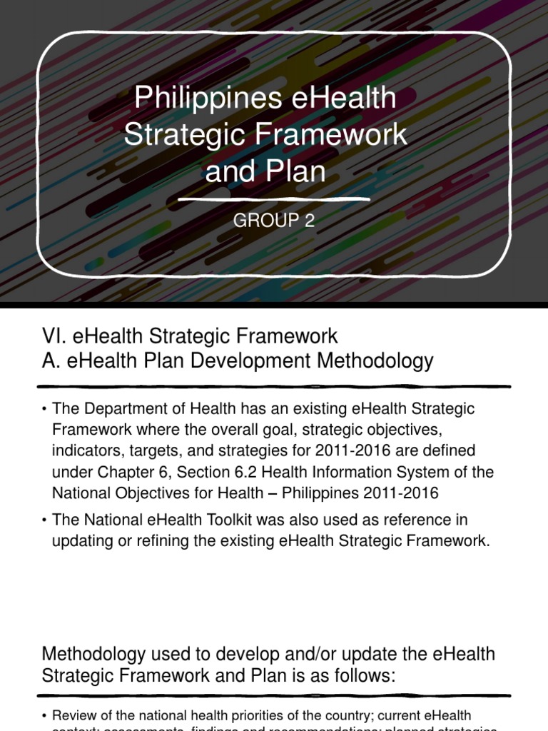 • Review of the existing eHealth Framework - vision, mission, goals, and