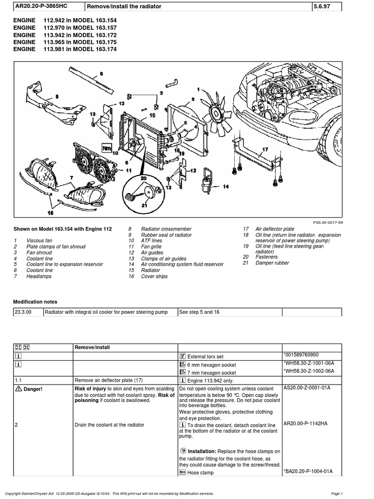 Copyright DaimlerChrysler AG 12.05.2006 CD-Ausgabe G/10/04 . This WIS print-out will not be recorded by Modification services. Page 1