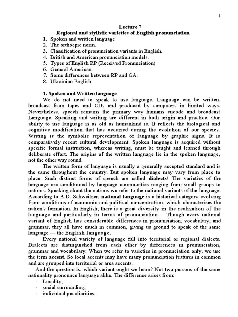 Regional and stylistic varieties of English pronunciation