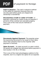 going to get paid for your exports. While relying on cash up front may eliminate the risk of non-