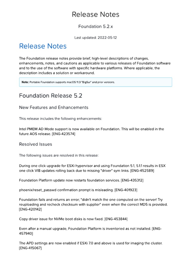 The Foundation release notes provide brief, high-level descriptions of changes,