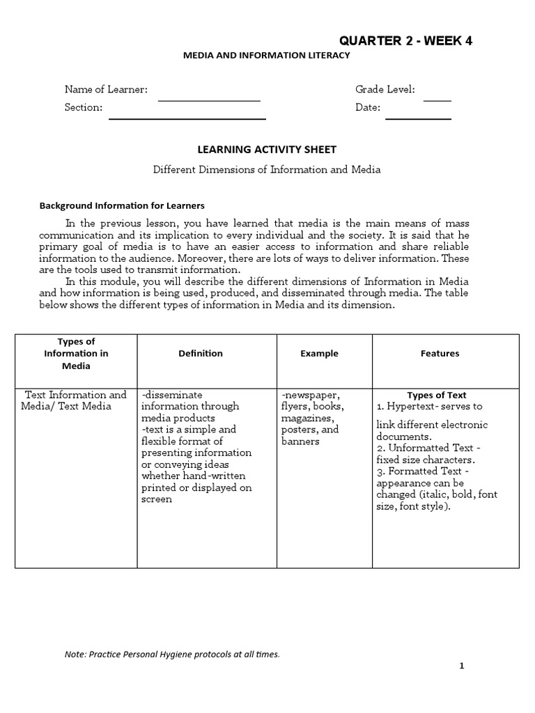 Media/ Text Media information through flyers, books, 1. Hypertext- serves to