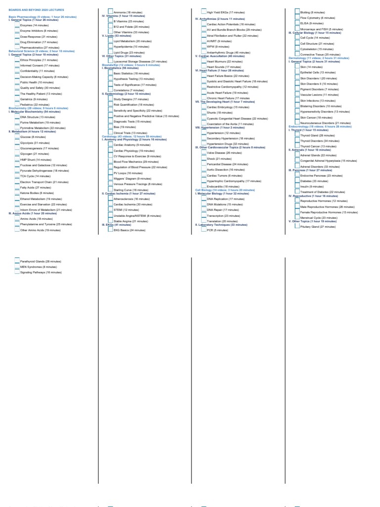 I. Anatomy (2 hours 0 minutes) Muscular Dystrophy (9 minutes) T-cells (30 minutes) Fungal Skin Infections (10 minutes)