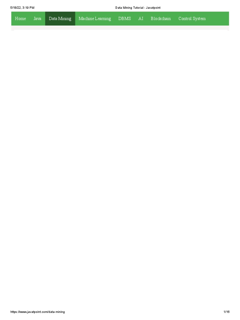 5/18/22, 3:19 PM Data Mining Tutorial - Javatpoint