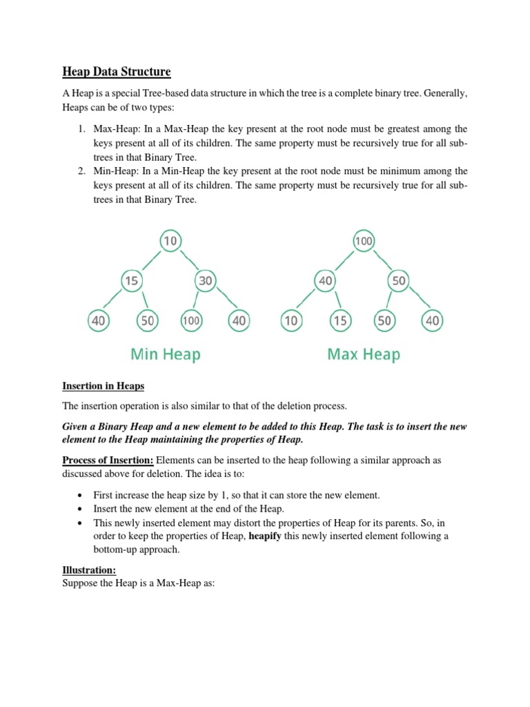 A Heap is a special Tree-based data structure in which the tree is a complete binary tree. Generally,